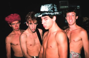 MINNEAPOLIS, MN - JANUARY: Rock band Red Hot Chili Peppers (L-R) Flea, Hillel Slovak, Anthony Kiedis, Jack Irons pose for a portrait backstage at First Ave Nightclub in Minneapolis, Minnesota after their show in January 1987. (Photo by: Jim Steinfeldt/Michael Ochs Archives/GettyImages)