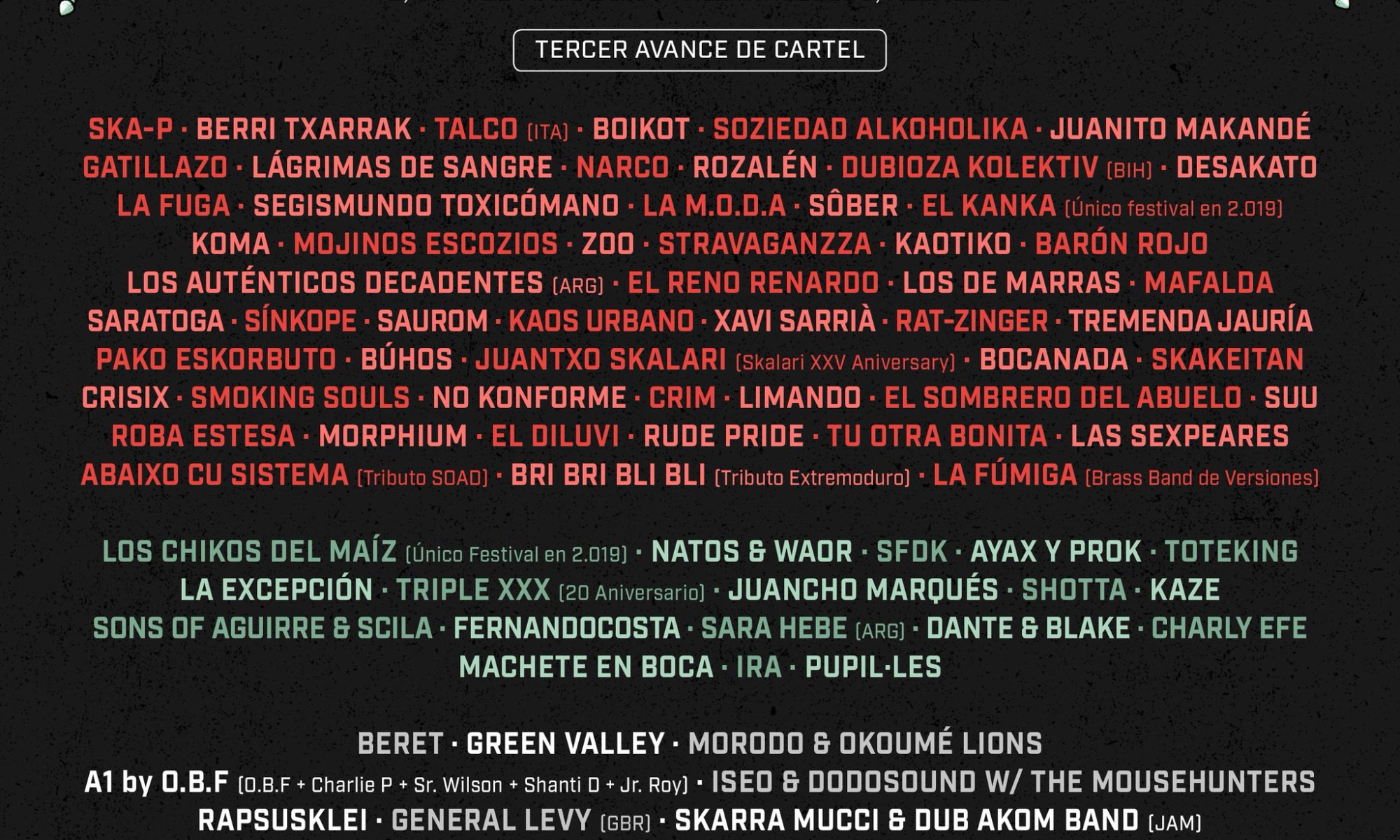 Uno de los grupos más combatientes del cartel ha conseguido enamorar a montones de fans a través de sonidos que mezclan géneros tan dispares como el ska, el punk, el rock o el hardcore y han convertido temas como En Guerra o La Llorona en imprescindibles canciones para bailar y saltar a ritmo punk.