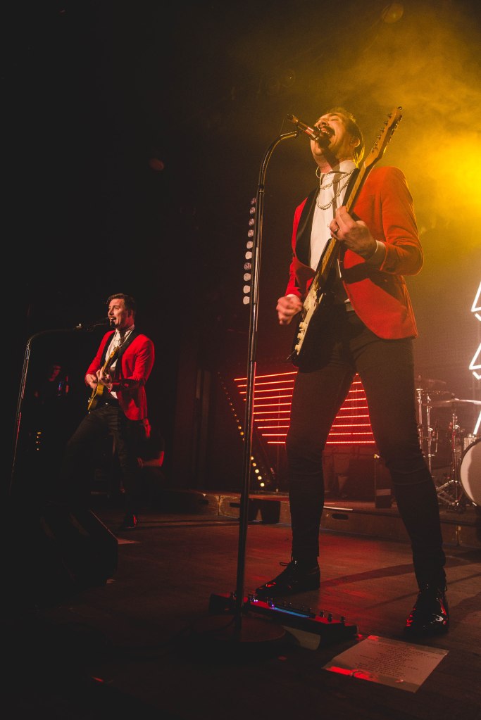 Con algunos interludios alargados y ciertas coreografías de baile y posición de los suecos, se nota el trabajo que ha llevado montar su juego de luces y el diseño del escenario, con esa maravillosa luz en forma de rayo que le da un toque impresionante. Royal Republic tienen una de las mejores presencias escénicas que he podido ver nunca, con sus trajes a juego y los movimientos desenfadados pero a la vez muy medidos que tienen todos. Con Getting Along de su anterior álbum, Weekend Man, empieza el ecuador de la setlist, llena de hits como Underwear o Full Steam Space Machine, disfrutada por toda alma presente en la sala.