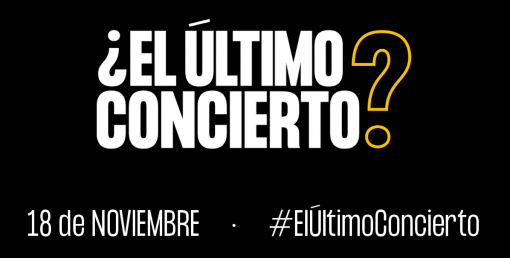Por todos es sabido que la situación que están viviendo las salas es extrema. Si el 17 de septiembre el mundo de la cultura salió a la calle bajo la campaña Alerta Roja, en esta ocasión son las salas de conciertos las que han creado un nuevo movimiento. #ElÚltimoConcierto está impulsado por a Plataforma de Salas de Conciertos y es la unión de salas de conciertos de toda España, que luchan para sobrevivir en este fatídico 2020.