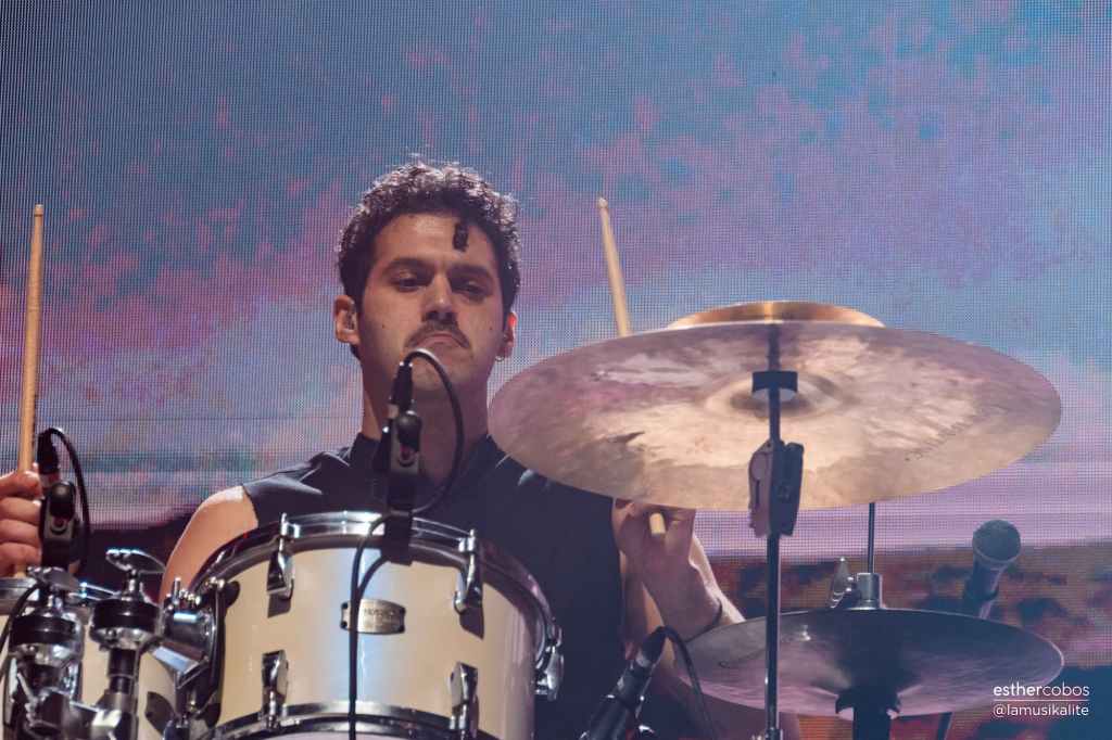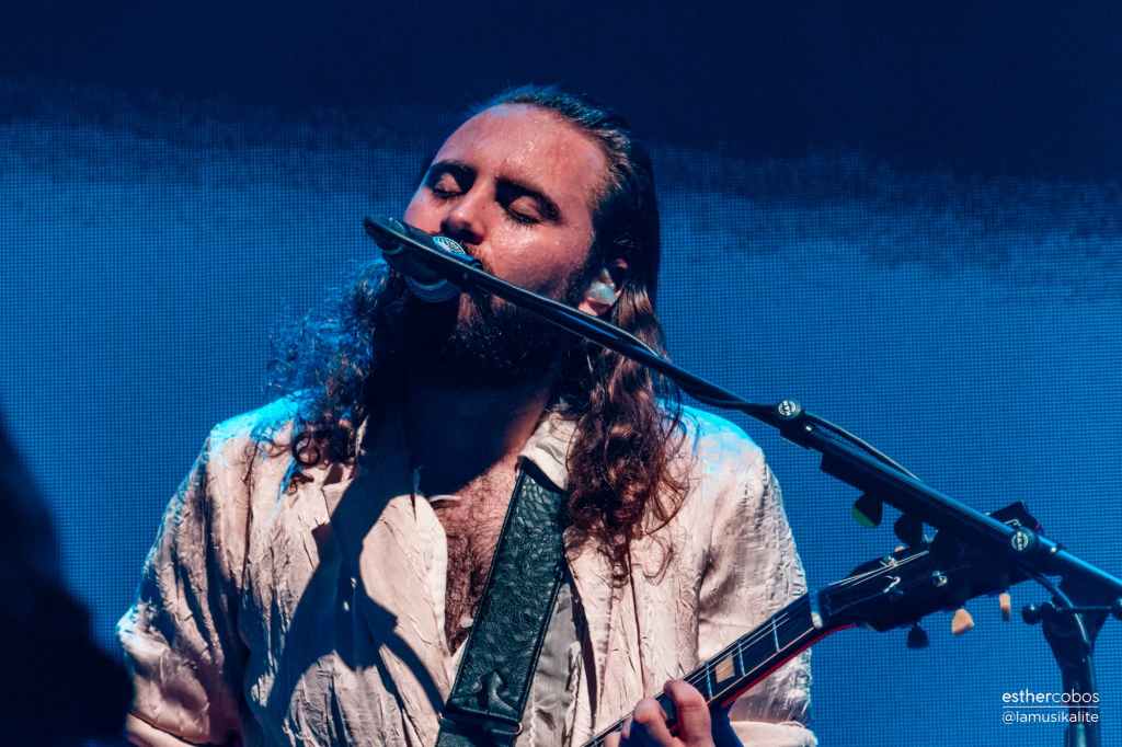 Siguió avanzando el repertorio, aunque me voy a parar en La torre Picasso. Su penúltimo sencillo. En él reventaron los cánones de la música actual con esta tendencia que hay de música corta, de consumirlo todo rápido. Se marcaron una canción de ocho minutos. OCHO. El momento final fue épico. Pero las sorpresas seguían. Un rato después vimos que se preparaba un grupo de instrumentos de cuerda en la zona alta del escenario. Es decir, encima de la pantalla donde se veían algunos de los visuales. Con ese grupo tocaron algunas canciones, empezando con Virtud y castigo. Una canción que los propios fans de Arde Bogotá hicieron triunfar por su coro al final. Todo el Sant Jordi Club cantando esa melodía ya clásica, con la banda haciéndola tan potente. ¡Qué intensidad!